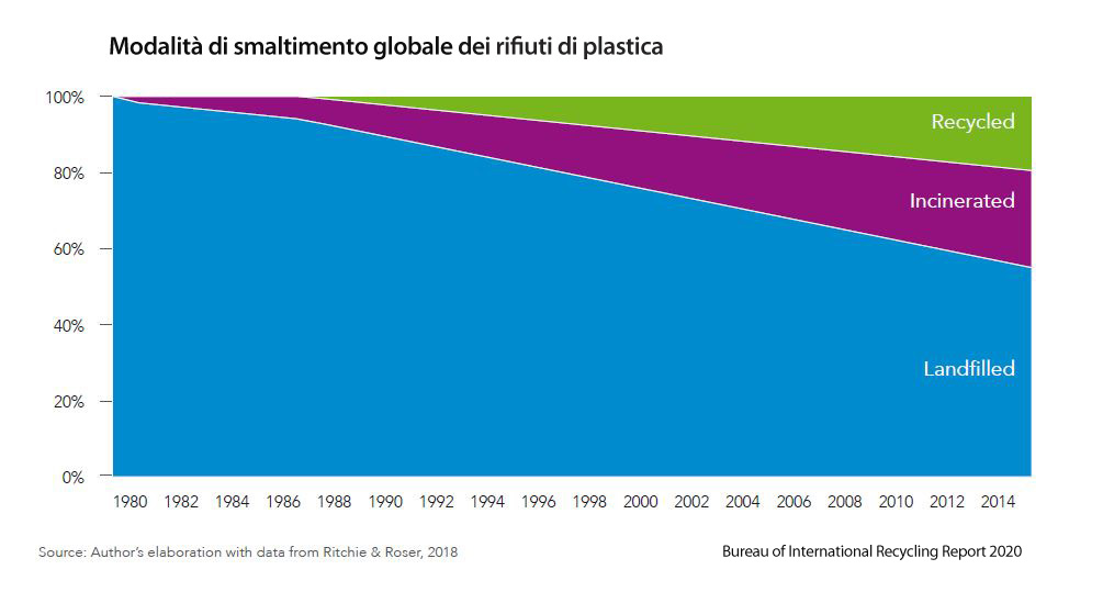 All’avvio di questo 2021, parliamo ancora di produzione di plastica e dei relativi rifiuti. Lo scorso novembre il BIR (Bureau of International Recycling) ha pubblicato un rapporto, intitolato “Riciclo della Plastica”, dove vengono riportate informazioni, dati e raccomandazioni alle istituzioni relativamente la gestione e il riciclo dei rifiuti in plastica. I dati dello studio sono sconfortanti: ad oggi sono state prodotte circa 9,2 miliardi di tonnellate di plastica e, sebbene abbia rivoluzionato e semplificato la vita moderna, il suo consumo crescente e la gestione problematica del fine vita sta causando ingenti criticità ambientali.