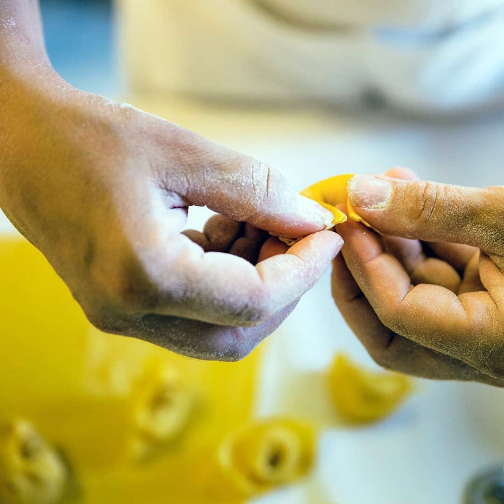 Per ricordare questa storia struggente, le donne locali hanno iniziato a tirare, nell’intimità delle proprie case, una sfoglia sottile come la seta e gialla come l’oro più prezioso e che, una volta farcita, viene poi simbolicamente “annodata” similmente al drappo della ninfa Silvia: ed è così, narra la leggenda, che nacque il nodo d’amore.