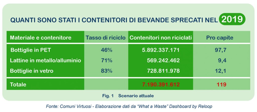 L’Associazione Comuni Virtuosi ha divulgato i risultati riferiti all’Italia del Rapporto “What a Waste” curato dalla piattaforma europea no profit Reloop secondo il quale potremmo ridurre questo spreco del 75-80% adottando un sistema di deposito cauzionale.