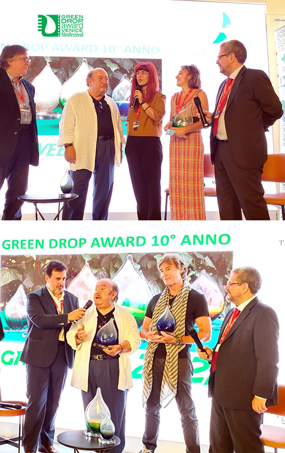 Il premio – la goccia di vetro di Murano realizzata dal maestro Simone Cenedese – in occasione della sua decima edizione è stato consegnato da Lino Banfi, all’Hotel Excelsior nella Sala della Fondazione dello Spettacolo, alle produttrici Piera Boccacciaro e Chiara Cerretini che, ringraziando, hanno precisato: “… è molto importante la questione ambientale e cercare di fare un cinema che possa sensibilizzare sulle tematiche ambientali e di sostenibilità. Nella lavorazione de Il Buco ci siamo impegnati come produzione a rispettare il protocollo green ottenendo il patrocinio dell’Ente Parco Nazionale del Pollino.”