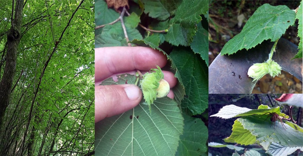 Corylus avellana, ossia il Nocciolo. Un noccioleto è un luogo misterioso, in special modo la mattina. I tanti polloni che formano le chiome sembrano erompere dalla terra come fuochi d’artificio vegetali. La luce filtra nel sottobosco pulito in raggi nitidi che illuminano solo i particolari di quella soffusa penombra; un sasso muschioso, una radice, una foglia appesa ad un filo di ragnatela, (molti ragni della famiglia araneidae tessono le loro magnifiche trappole tra questi fusti ascendenti e quando uno dei raggi mattutini del sole le inonda diventano visibili, grandi arabeschi simmetrici e meticolosi col loro mastro al centro).