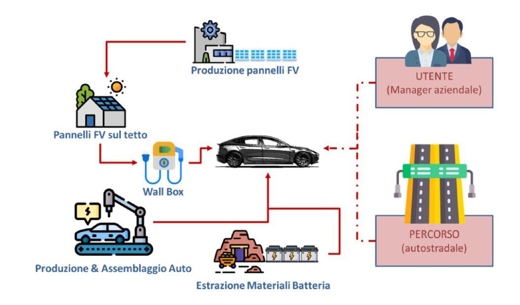 Sulla base della classe dimensionale dell’auto e del tipo di utilizzo si definisce un ciclo di marcia considerando la percorrenza media su tratte urbane, extraurbane e in autostrada. Per ciascun cluster così definito si considerano diverse modalità di ricarica: da wall-box e da colonnina ad uso pubblico standard e privato. Si considera anche la soluzione con autoproduzione di energia elettrica da fotovoltaico. Si ottengono in questo modo una serie di scenari di utilizzo per ciascun veicolo analizzato Inoltre, nell’analisi di ogni scenario si considerano le infrastrutture coinvolte: il sistema di ricarica (wall-box o colonnina ad uso pubblico), il prelievo dell’energia elettrica (autoprodotta da FV o prelievo dalla rete pubblica) e, nel caso di prelievo dalla rete pubblica, il tipo di contratto, considerando eventuali contratti 100% rinnovabili per la fornitura dell’energia elettrica prelevata dalla rete.