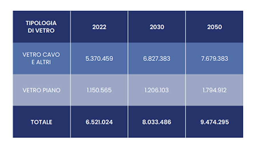 In una prospettiva temporale al 2050 che prevede un aumento della produzione di vetro che passerebbe dalle attuali 6,5 milioni di tonnellate a 9,4, con un aumento conseguente di occupazione e capacità produttiva, Open Impact entra nello specifico degli interventi necessari. Nei circa 8 miliardi previsti per la decarbonizzazione sono stati considerati tutti gli investimenti per l’efficientamento energetico, l’elettrificazione, il Carbon Capture and Storage, l’idrogeno, il biometano e il riciclo. Per l’efficientamento energetico degli edifici per la sostituzione di infissi, il totale dell’ investimento pari a poco più di un miliardo dovrà finanziare l’ampliamento degli impianti al 2040. Anche per l’aumento della domanda di vetro cavo, un investimento di poco più di 1,1 mld servirà per la costruzione di nuovi impianti. Lo stesso vale per il riutilizzo degli imballaggi dove un investimento di poco più di 600 milioni dovrà servire per nuovi forni.