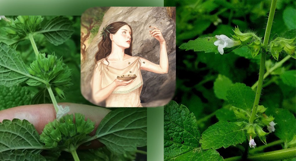 Tra i miti dell’Antica Grecia riguardanti la teogonia c’è quello di Crono, padre di Zeus poi conosciuto da tutti per essere il il capriccioso padre degli dei e degli uomini, signore del fulmine, il sovrano dell’Olimpo che governava su tutti gli Dei dell’Antica Grecia. A Crono, era stato predetto che un figlio lo avrebbe precipitato dal cielo e sostituito, così lui i figli se li mangiava affinché non avessero occasioni di spodestarlo dal suo trono olimpico. Rea, la moglie, era stanca di vedersi i figli divorati e quando le nacque il bellissimo Zeus pensò di nasconderlo perché non avesse a patire la fine dei fratelli. Sul monte Ida gli pose a balia la capra Amaltea dal ricco latte e chiese alla dolce ninfa Melissa di nutrirlo con il miele. Melissa significa appunto: colei che produce il miele e per estensione, l’ape. Ed in effetti la pianta è molto attraente per imenotteri e ditteri (api e moschine), molto meno per i lepidotteri (farfalle) perché il fiore è molto piccolo e non adatto alla lunga spiritromba (la proboscide con cui si nutrono) di questi colorati insetti. Il sopravvissuto Zeus sconfiggerà poi il padre Crono, facendogli rigurgitare gli altri figli che aveva divorato, e il primo oggetto vomitato da Crono fu proprio quella pietra che egli aveva inghiottito scambiandola per Zeus.